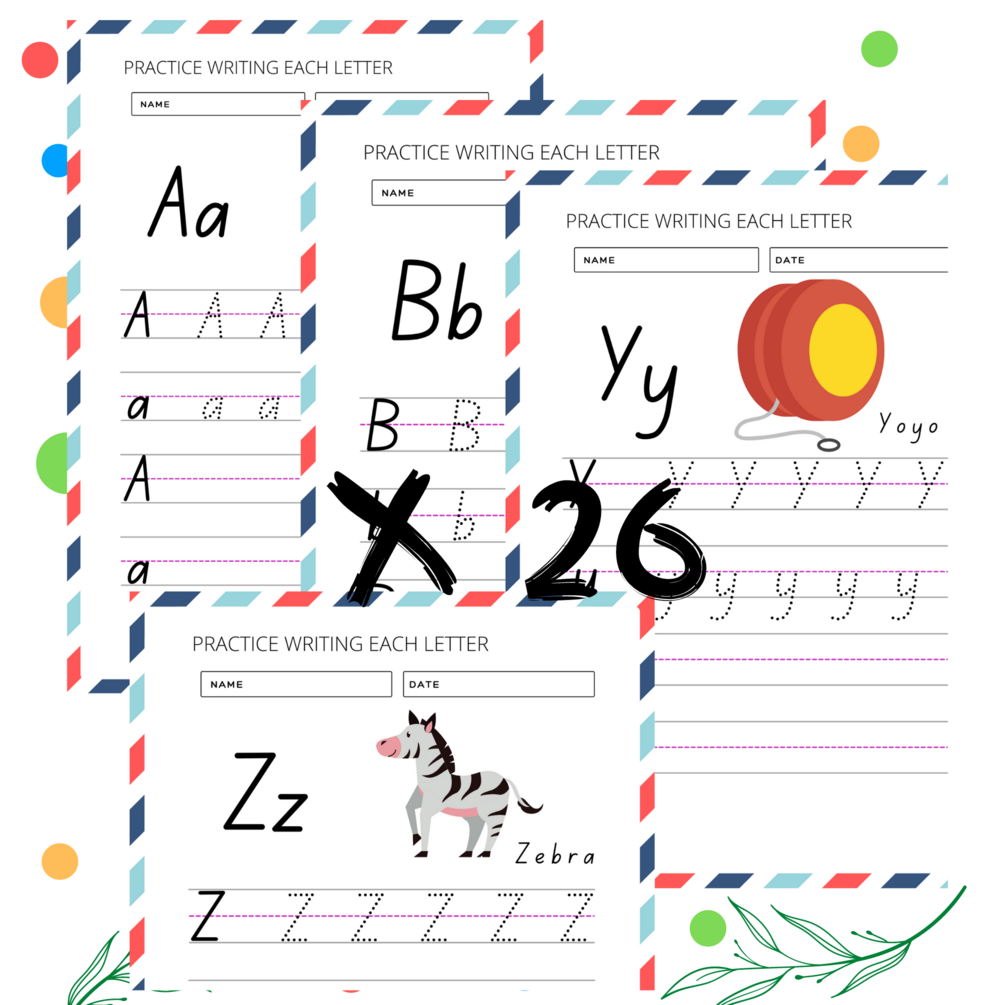 120 Printable pages for KIDS learning letter. Contains How to write alphabet guide.